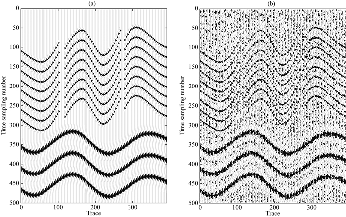图 3 (a) 无噪数据; (b)含噪声数据 Fig. 3 (a) clean data; (b) noisy data |