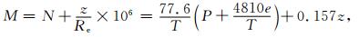 根据大气修正折射指数M的定义为(康士峰等,2014):