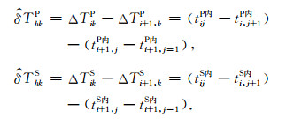 将公式(4)中的台站到时替换为公式(2)给出的台站到时差,即对初始观测到时进行两次差分.同样不失一般性,此处选择h=(i, i+1);k=(j, j+1),定义