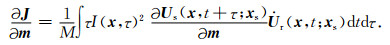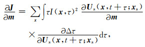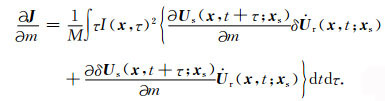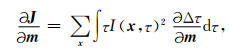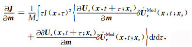 时移量τ∈[-T, T],目标函数(8)式在速度存在误差时可以自动的计算非零相关值对应的时移量Δτ,在此我们假设速度的扰动误差仅仅会引起时移量Δτ的变化,所以J关于模型参数m的梯度可以表示为