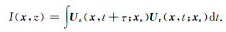 单个地震炮点xs对应的空间位置点x处t时刻的正传波场快照Us(x, t; xs)与反传波场快照Ur(x, t; xs)之间的时移互相关,