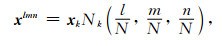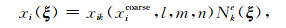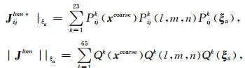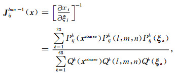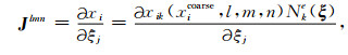 其中xik(xicoarse, l, m, n)为粗网格内第(l, m, n)个细网格的第k个格点的i分量,xi(ξ)为细网格的坐标的i分量,将(12)式代入雅克比矩阵中