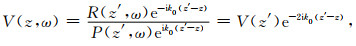 其中,Φ(z, ω)表示波场φ(z, ω)的谱密度函数,其可被分解为入射谱P(z, ω)和反射谱R(z, ω),对应的质点振动速度C(z, ω)分别为