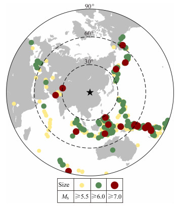 图 2 地震事件震中分布图 Fig. 2 Epicenters distribution of earthquake events |