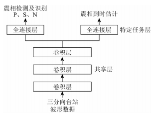 Perol等(2018)和Ross等(2018)分别采用卷积神经网络实现地震事件的检测和震相的分类,主要利用的是卷积神经网络的分类功能,且每个神经网络模型只实现单个任务.而本文采用了多任务神经网络结构,分别利用分类和回归功能同时实现震相的检测识别和到时的估计,各任务之间可以共享所学习到的信息,提高模型的泛化能力.