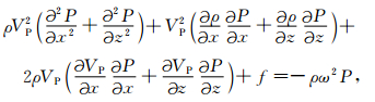 将式(8)算子作用于波场P,进行傅氏反变换,建立了描述非均匀介质纵波传播的双变参数标量波动方程,公式为