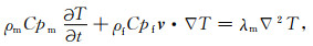 T为温度,t为时间,ф为模型基质孔隙度,ρ为密度,v为对流速度,Cp为比热容,λ为热传导系数.参数下标m和f分别代表围岩-流体混合体和流体的属性(下同).