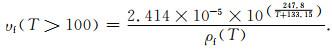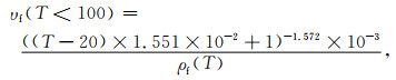 其中,ρf0表示温度T=T0时海水的密度.以100 ℃为界,流体的运动学黏度表现为两种不同的规律(Schoofs 2000,Schoofs and Hansen, 2000,方程(5), (6)),即: