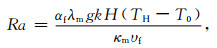 洋壳下伏热量的传递和释放主要通过热扩散和热对流两种方式,而当热对流速度远大于热扩散速度时,洋壳内部的热液对流得以发生,二者比值,即瑞丽数(Ra, Rayleigh number, 方程(7))为: