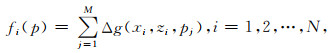 其中fi(p)表示第i个测点O(xi, zi)处的重力异常,第j个柱体的厚度为pj,Δg(xi, zi, pj)表示第j个柱体在第i个测点处引起的重力异常,其表达式为(Rao et al., 1994):