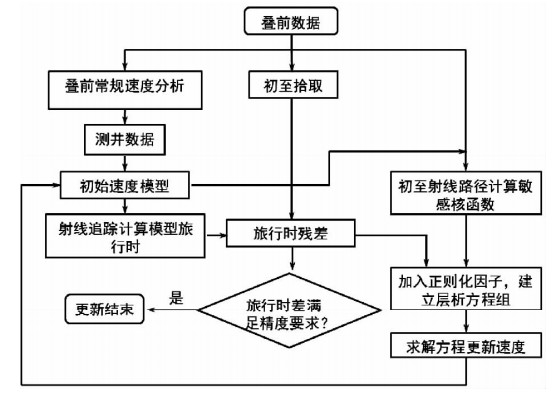![]() | 图3 初至走时层析速度建模流程图 Fig. 3 The flow of travel time tomographic velocity modeling on first break |