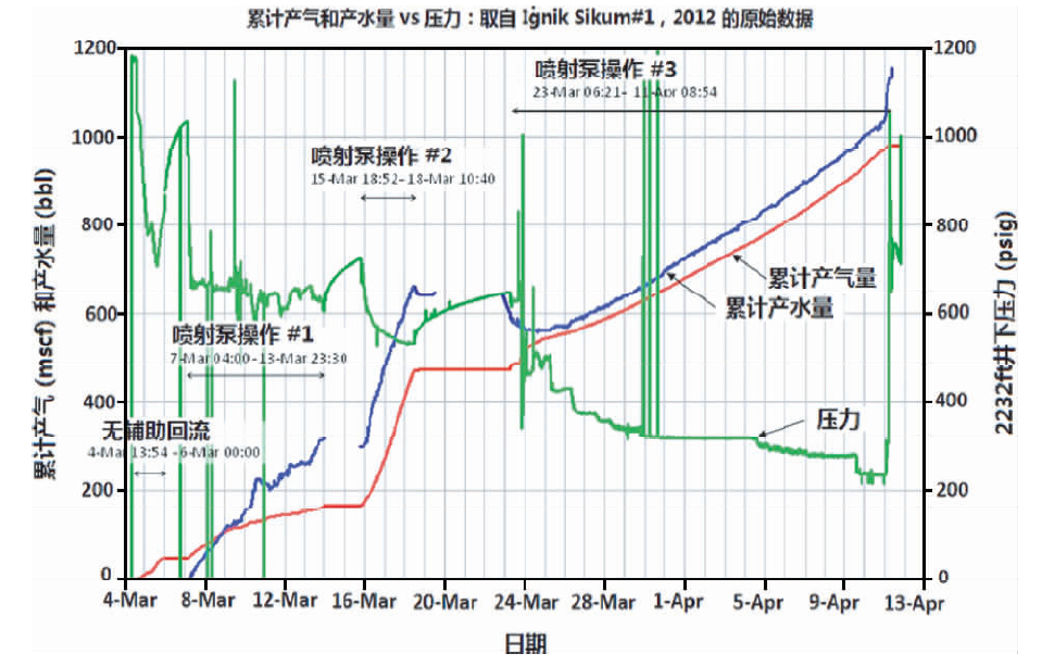总的来讲,水合物现场试采及监测项目测试了以下数据:(1)地面压强、温度和循环速率;(2)采气总量和采气速率;(3)井底压强和温度;(4)气体、液体组分和含量;(5)电阻、超声、核磁、中子密度等参数,并根据这些监测数据计算和评价水合物地层的温度和压力分布、含气量、水合物储量、天然气成分、水合物分解范围、岩石物性等.
