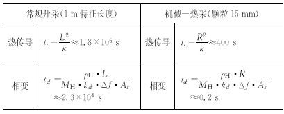 计算结果如表 1.可以得出:机械-热开采水合物的方法热传导特征时间和相变特征时间大大缩短,热效率非常高效.