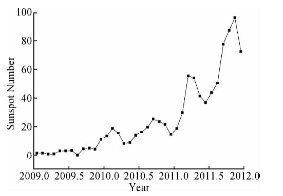 ![]() | 图 2 2009-2011年太阳黑子数 Fig. 2 Sunspots in 2009-2011 |