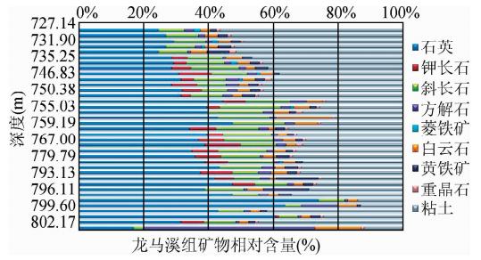 ![]() | 图 1 渝东南黔江地区龙马溪组矿物相对含量 Fig. 1 Mineral relative content of in Longmaxi Formation,Qianjiang,Southeast of Chongqing |