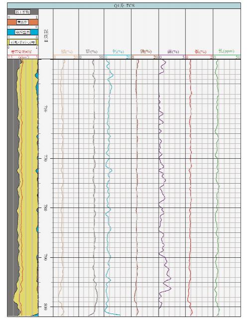 ![]() | 图 2 Q1井ECS处理成果图(750~802 m) Fig. 2 Well logging processing results for ECS of Q1(750~802 m) |