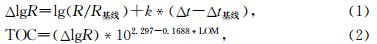 1990年,Passy等(2005)提出了利用电阻率和声波时差计算TOC的方法,公式为