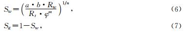 本文采用阿尔奇公式计算目的层的含水饱和度(Archie G E,1942)为