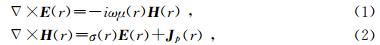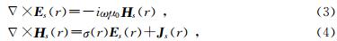 ,并且频率f=ω/2π.在低频电磁法勘探中位移电流一般认为可以被忽略,麦克斯韦方程组为