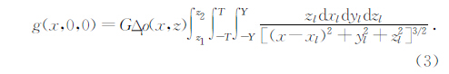 二维模型通常利用无限延伸的二度棱柱体来近似,即将连续沉积层划分为大量细小平行的棱柱体(图 1).第i个柱体在地表处产生的剩余重力场公式为