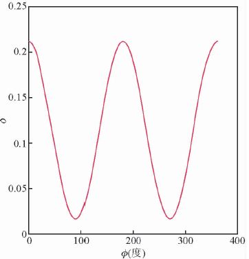 ![]() | 图 2 δ随方位角的变化示意图 Fig. 2 The sketch of δ change with the azimuth |