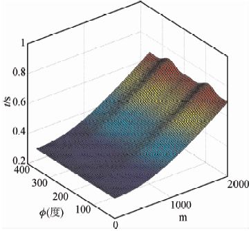 ![]() | 图 4 t随方位角偏移距的变化 Fig. 4 t change with the azimuth and offset |