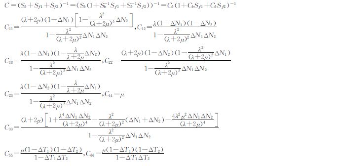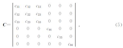 根据柔度矩阵求弹性矩阵如公式4所示,求得裂缝介质的弹性矩阵如公式5所示.