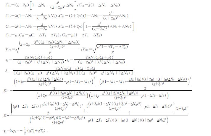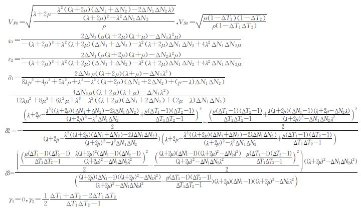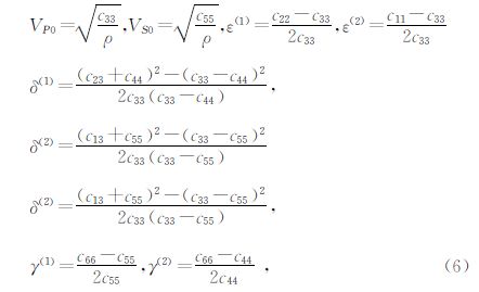由弹性矩阵表示的裂缝介质物理意义不直观,为了直观表示,Tsvankin提出用两个垂向速度和七个无量纲的参数来表征OA介质弹性性质.具体定义为
