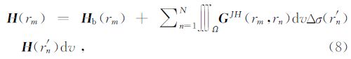 为了进行数值计算将(5)、(6)式化为矩阵方程,把异常体剖分为N个小立方体,且认为每个小立方体的场值取立方体中心点的值.则第m块中心点的场值为