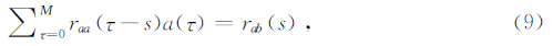 式中:raa(τ-s)是时间延迟为τ-s的地震信号 a(t)自相关数列;rab(s)是时间延迟为s 的地震信号a(t)与b(t)的互相关数列.我们用递推法解托布利兹矩阵方程(9),可以得到相位校正反褶积算子.