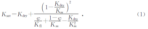 其中:Km、Kfl、Kdry和Ksat分别是岩石基质、孔隙流体、干岩石骨架和饱和岩石的体积模量,单位为GPa,μdry和μsat分别是干岩石和饱和岩石的剪切模量,单位为GPa,φ为总孔隙度.