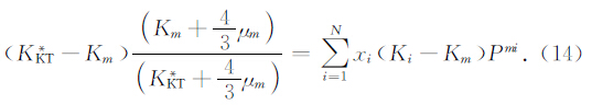 初始条件是K(0)=K1和μ(0)=μ1,其中 K1和μ1分别为初始材料的体积模量和剪切模量, K2和μ2分别为逐渐加入的包含物材料的体积模量和剪切模量, y为包含物的含量,对于流体包含物和空包含物,y等于孔隙度.P和Q的上标*2指此几何因数是针对具有等效模型K*和μ*的背景介质中材料2.