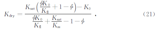 1.2 单参数计算干岩石模量方法 1.2.1 Biot系数法将1.1中的Gassmann方程写成如下形式:
