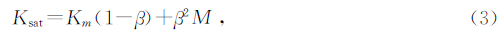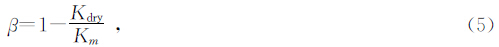 式(5)中:β为Biot系数,由Biot系数β的表达式可以看出β是Km和Kdry的函数,其中Km是通过Voigt-Reuss-Hill平均估算出来(Biot,1956),而Kdry是需要求出的干岩石的体积模量,所以Biot系数法是从Gassmann方程中演化而来的.β的取值范围在0到1之间,β=0代表固结良好的沉积岩,β=1代表未固结的沉积和悬浮物.目前最流行的试验方法是将β看成是孔隙度的函数近似求得,比较流行的算法是Krief等人(Kriefet al.,1990;Kumar and Han, 2005)提出的: