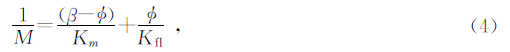 流体替换的理论基础是 Gassmann方程.它建立了岩石体积压缩模量、孔隙度、孔隙流体的体积压缩模量、岩石骨架的体积压缩模量、基质矿物(颗粒)的体积压缩模量之间的关系.经典Gassmann方程表达式为