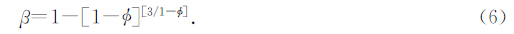 地层的孔隙度一般由测井曲线可以求出.所以该关系式可以成为干岩石计算中的约束条件.因为Biot系数β的取值范围是0-1,当孔隙度是一定的情况下,这样可以对比固结参数随Biot系数的变化关系(如图 1).