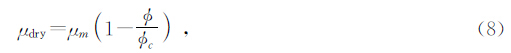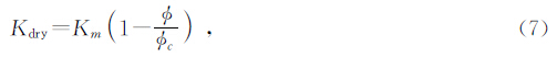 式(7)中:c为临界孔隙度,μm为岩石基质的剪切模量,对于砂岩,一般情况下,c=0.4(伍向阳和陈祖安,2001).