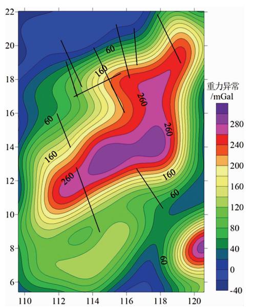 ![]() | 图 3 重力异常值 Fig. 3 The gravity anomaly |