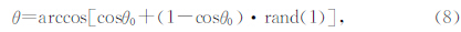 设抛射空间角在与竖直z方向的夹角θ满足0~θ0之间的随机分布,则抛射角θ 可以表示为