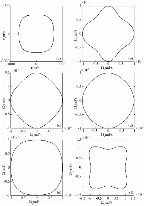 图 1 TI介质qP波最大旋转速度及相速度 (a)为模型2中qP波相速度;(b)为模型1中qP波最大旋转速度;(c)为模型2中qP波最大旋转速度;(d)为模型3中qP波最大旋转速度;(e)为模型4中qP波最大旋转速度;(f)为模型5中qP波最大旋转速度. Fig. 1 The maximum peak rotational rate and phase velocity of qP wave in TI media (a)The phase velocity of qP wave in the second model;(b)The maximum peak rotational rate of qP wave in the first model;(c)The maximum peak rotational rate of qP wave in the second model;(d)The maximum peak rotational rate of qP wave in the third model;(e)The maximum peak rotational rate of qP wave in the forth model;(f)The maximum peak rotational rate of qP wave in the fifth model. |