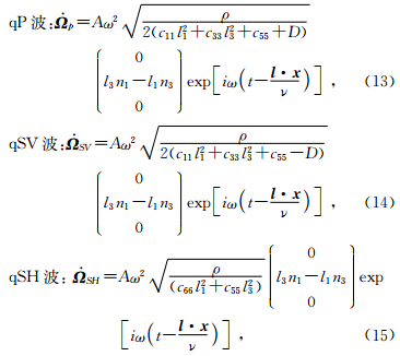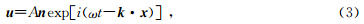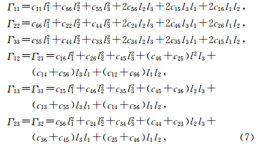 (l1 e 1+l2 e 2+l3 e 3)为波数,其中ν为相速度,l 表示波传播方向单位矢量,x =x e 1+y e 2+z e 3为位置矢量;