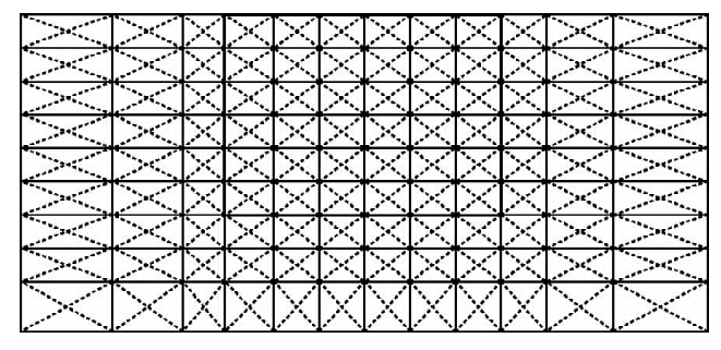 为了对求解区进行更为精细的剖分和适应地形的变化,在每个矩形单元内再进行交叉对称三角形剖分(万乐,2000),如图 2所示.