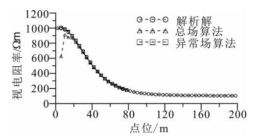 经过计算,总场算法的最大相对误差为37.71%,而异常场算法的最大相对误差仅为4.51%.