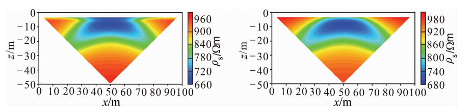 ![]() | 图 8 基于异常场的正演结果 Fig. 8 The Forward modeling results based on the anomaly electric field method |