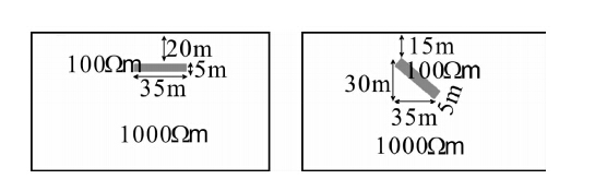 为了验证本文算法和程序的正确性,本文设计了如图 7所示的两个理论模型,使用本文的正演程序进行了正演模拟,并与国外某商业正演软件的模拟结果进行了对比.