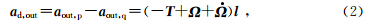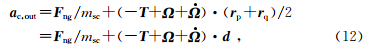 分别示加速度计的输出矩阵、卫星质心处的重力梯度张量、卫星受到的非保守力、单个加速度计到卫星质心的位移、卫星的角速度矩阵与角加速度矩阵,msc示卫星的质量.当每个加速度计监测的卫星平台非保守力相同时,根据式(1)可得每对加速度计(设为加速度计p与q)的差模输出为