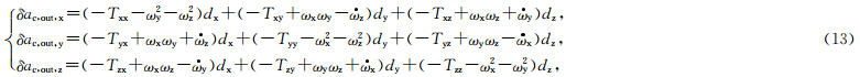 根据上式,质心偏差引入的三轴的共模加速度测量噪声矩阵可展开为