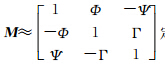 当加速度计的理想坐标系按如下顺序转动微小角度(章仁为,1998):(1)绕理想坐标系的Z轴转动Ф角度;(2)绕第一次旋转后的X轴转动Ψ角度;(3)绕第二次旋转后的Y轴转动Г角度后,得到实际加速度计坐标系,则单个加速度计的输出变为