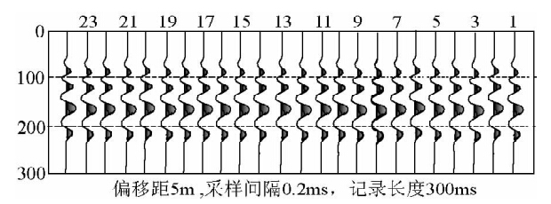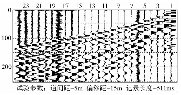 本次波速测量采用重庆地质仪器厂DZQ-48型地震仪,DZPS-60纵波检测器,采用锤击方法产生地震波.正式进行地震波速测量前,做了道一致性检验,结果如图 5,表明仪器的道一致性很好且稳定.