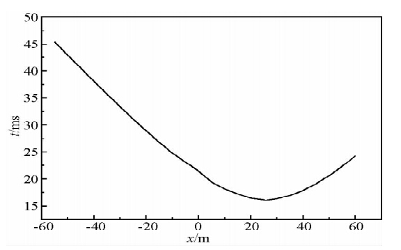 ![]() | 图 7 实测斜截面上反射波的时距曲线Fig. 7 Reflection wave curve of time-distance on reality dip section |